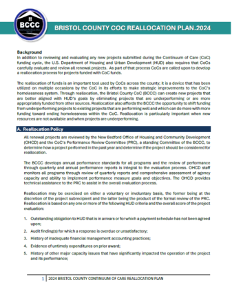 A copy of the CoC’s Reallocation Plan.2024 can be downloaded here: BRISTOL COUNTY COC REALLOCATION PLAN.2024